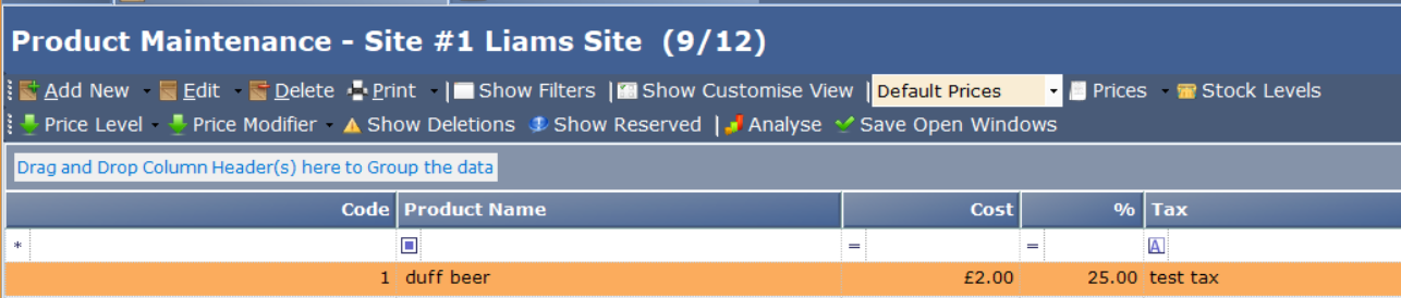 Updating Products within the Product Maintenance (Cost Price)