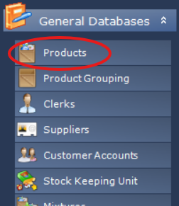 1. First navigate to the products screen within general databases