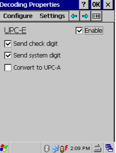 To access these in decoding select configure > 1D Barcode and tap the bar code type you want to check.